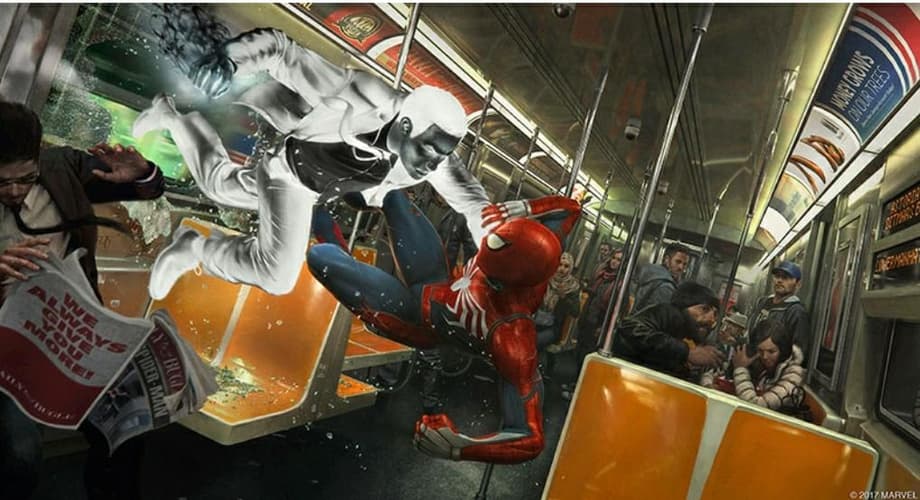 This concept art shows Spidey doing battle with Mr. Negative on the subway in what promises to be an incredible set piece. It marks a different setting for the hero's video game adventures as well.