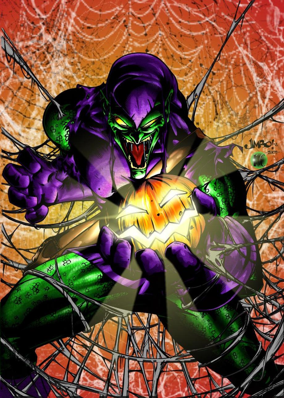 Norman Osborn/Green Goblin: The villain is created with the OZ formula but otherwise it's the ‘616' version of the character. As such he is very intelligent, strong, resourceful and maniacal. He wears a green and purple suit complete with a mask and uses pumpkin bombs and a glider. The sonic laugh used by the Goblin is usually exclusive to Phil Urich in the comics.