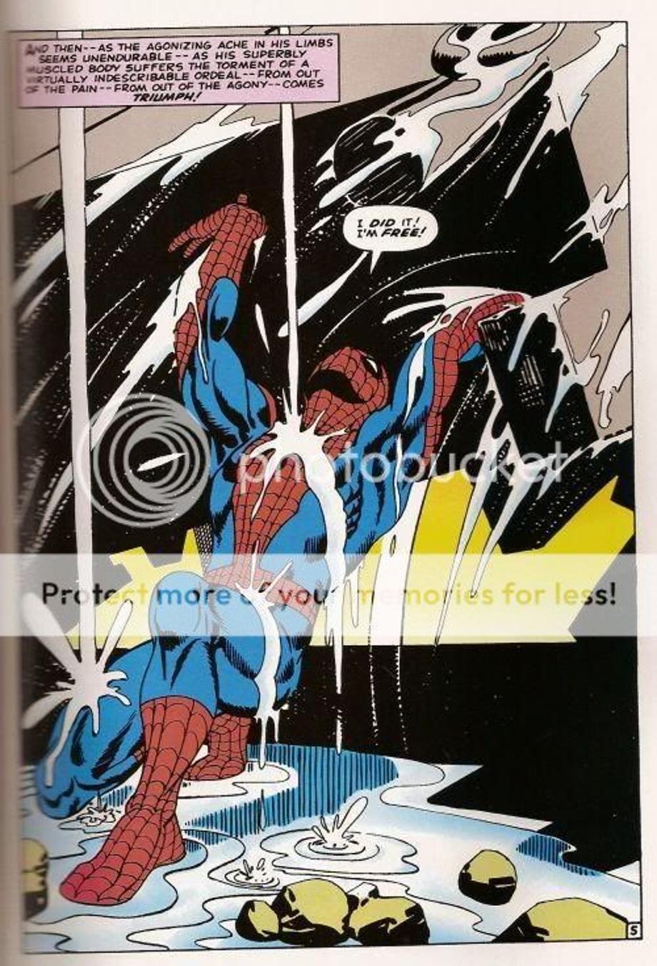 1. Webbing has the tensile strength of 120 pounds per square millimeter. That would mean that you need to apply 54 kilograms of strength just to break a millimeter thick strand of Spidey’s webbing. You would apply over half a ton of force to break a CENTIMETER thick strand of it. Now think when he sprays it all over your body. The force required to break that amount of Spidey’s webbing would be in hundreds of tons