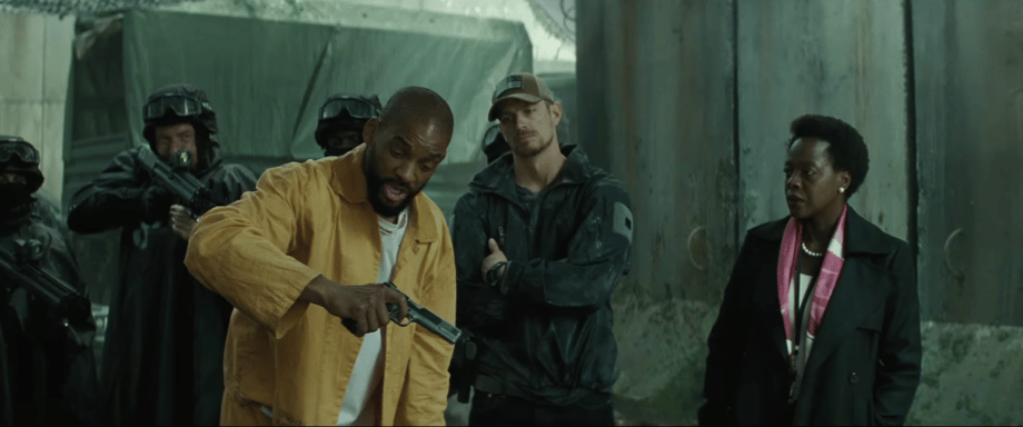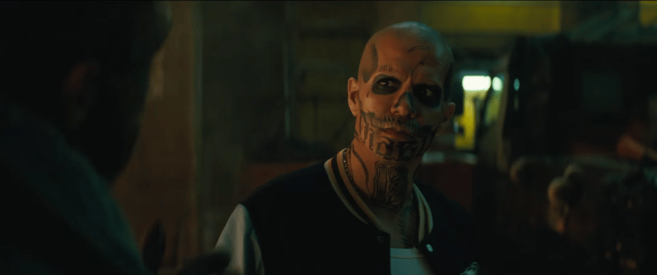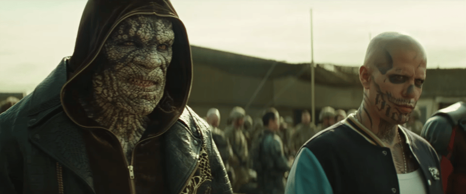 Suicide Squad stars Will Smith as Deadshot, Joel Kinnaman as Rick Flag, Jared Leto as the Joker, Margot Robbie as Harley Quinn, Jai Courtney as Boomerang, Viola Davis as Amanda Waller, Cara Delevingne as Enchantress, Ben Affleck as Bruce Wayne, Adewale Akinnuoye-Agbaje as Killer Croc, with Raymond Olubawale as King Shark, Jay Hernandez as El Diablo, and Adam Beach as Slipknot. Directed by David Ayer.