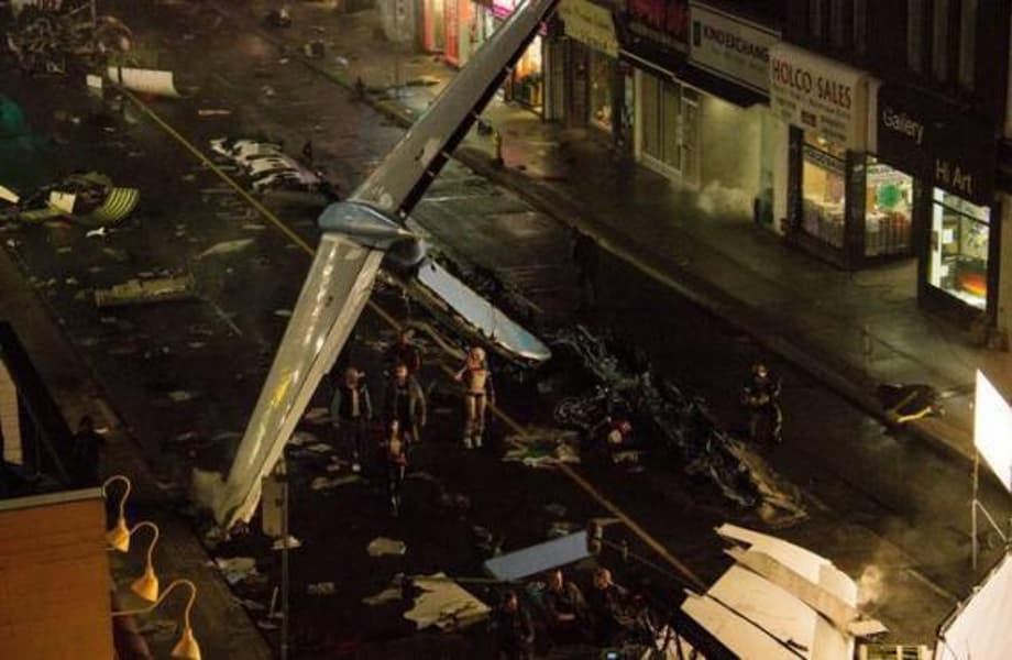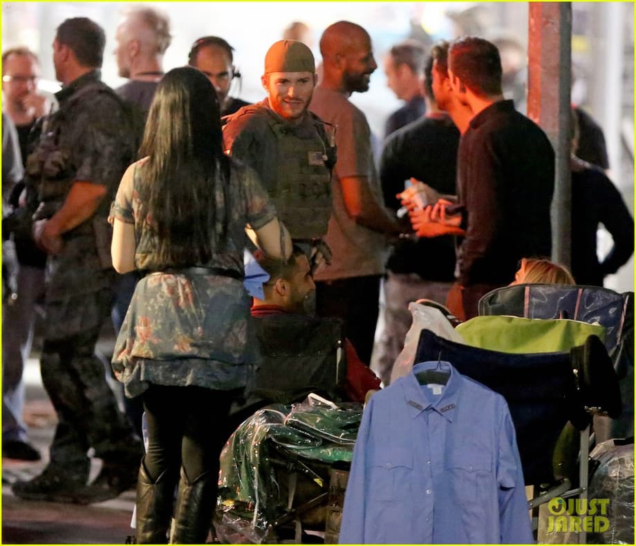 Earlier this week, filming for Suicide Squad had involved Task Force X observing debris from an apparent plane crash in Toronto, Canada Midway City. While the whole ensemble cast was present for the scene(s), new photos via Just Jared offer a closer look at Will Smith as Deadshot and Scott Eastwood possibly as Steve Trevor. As they also reveal our best look at the Killer Croc prosthetics applied to actor Adewale Akinnuoye-Agbaje, check out the photos below. What do you think?