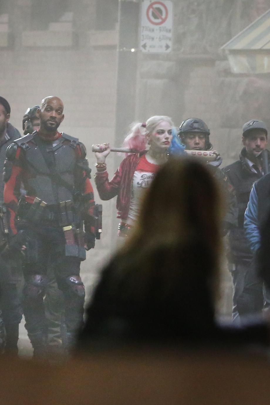 We already have an official look at Task Force X in the highly-anticipated Suicide Squad thanks to writer-director David Ayer, but now the Daily Mail, eTalk, and Margot Source have provided additional footage and a bit of footage from the set in Toronto, Canada. Featuring a new look at Will Smith as Deadshot, Joel Kinnaman as Rick Flag, Jai Courtney as Captain Boomerang, Karen Fukuhara as Katana, Jay Hernandez as El Diablo, Adam Beach as Slipknot, Adewale Akinnuoye-Agbaje as Killer Croc, with Scott Eastwood as an unknown military figure, and Margot Robbie as Harley Quinn, the awesome photos and brief set video be seen below. What do you think?