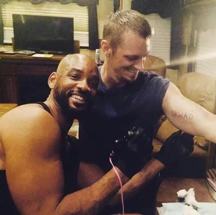 They should've had a real tattoo artist give them something unique to their character with SKWAD written next to it.