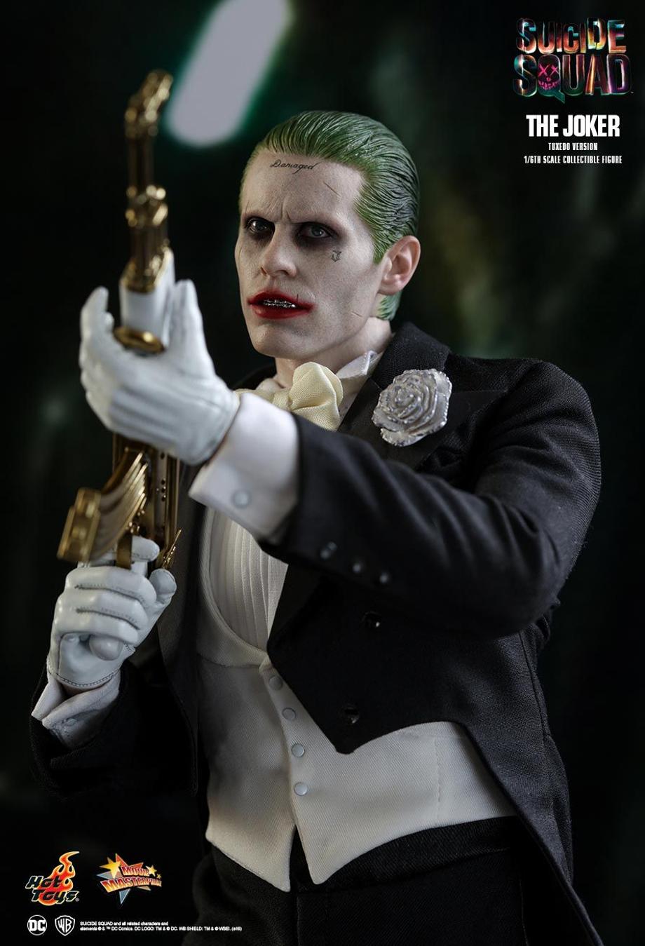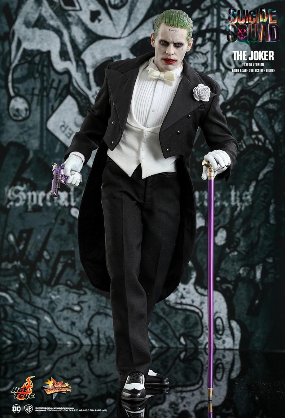 The movie-accurate collectible figure is specially crafted based on Leto's image as the Joker in a black tux, which traces its origin to the classic comics. It features a newly painted head sculpt, newly developed body, finely tailored costume, detailed weapons and accessories, and a specially designed Suicide Squad-themed figure stand with character backdrop.