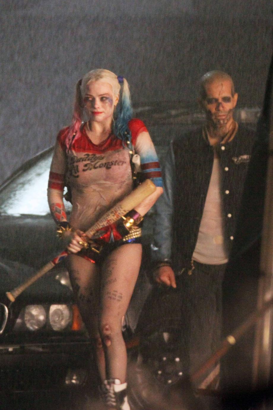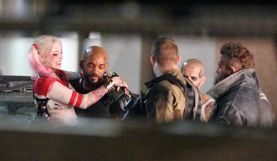 UPDATE: More photos have surfaced online from the Suicide Squad shoot and they feature more of Will Smith being quite the gentlemen as Deadshot, as well as Margot Robbie seemingly putting on quite a show in the rain as Harley Quinn. There's also a good look at Jay Hernandez as El Diablo.