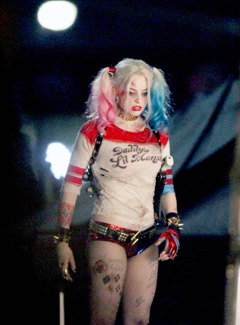 Filming is still going strong this weekend for Suicide Squad in Toronto, Canada, and Just Jared has just bagged the most recent photos from the not-so-secret set. Offering yet another look at Will Smith and Margot Robbie in costume as Deadshot and Harley Quinn, respectively, these photos show the pair getting pretty close during filming as well as in-between takes. In addition, we also have another grainy look at Jai Courtney as Captain Boomerang and Joel Kinnaman as Rick Flag.