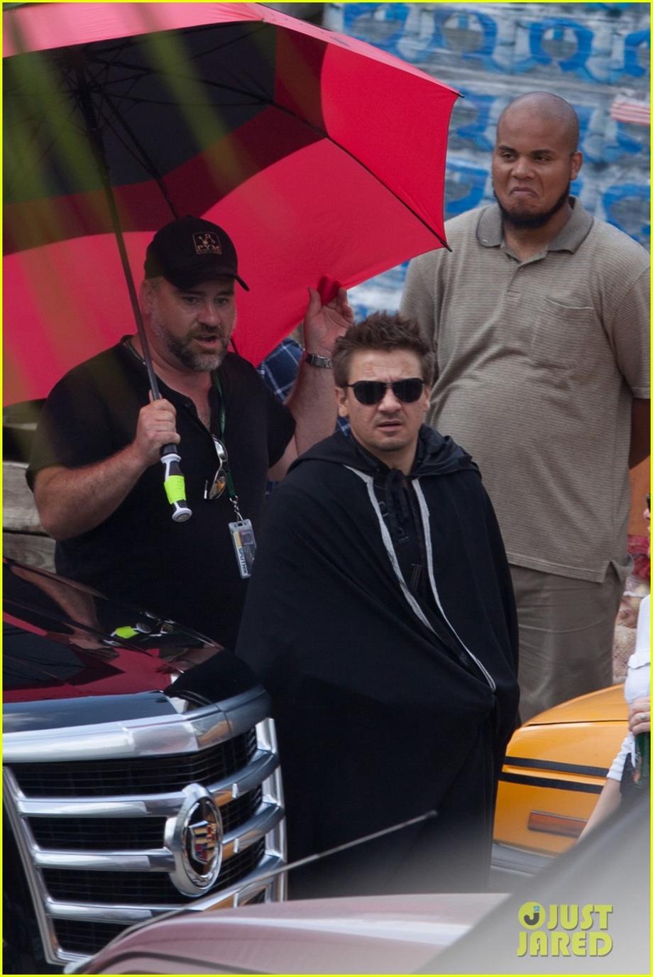 We've seen countless set photos of Captain America (Chris Evans) and the Falcon (Anthony Mackie) battling Crossbones (Frank Grillo) and his HYDRA(?) goons for Captain America: Civil War, but now some footage has surfaced that showcases the epic battle. Also, it seems Hawkeye may join the fight later on as actor Jeremy Renner has been spotted on the African Market set in Atlanta while seemingly hiding his new suit under a cloak. Furthermore, Elizabeth Olsen, aka the Scarlet Witch, was spotted nearby leaving her trailer. Thanks to New York Daily News, Just Jared, Daily Mail, as well as Instagram's Estevandam & Dae Kwon, check out the pics & vids below! What do you think?