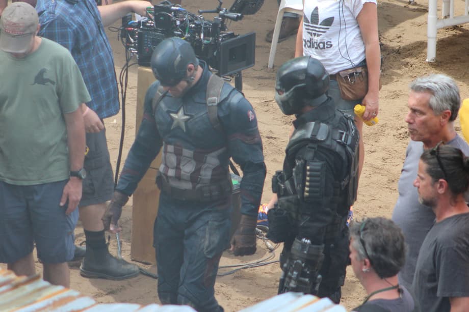 In addition to Jeremy Renner hiding his new Hawkeye suit, another batch of Captain America: Civil War photos show Elizabeth Olsen back on set, while videos finally capture Cap versus Crossbones