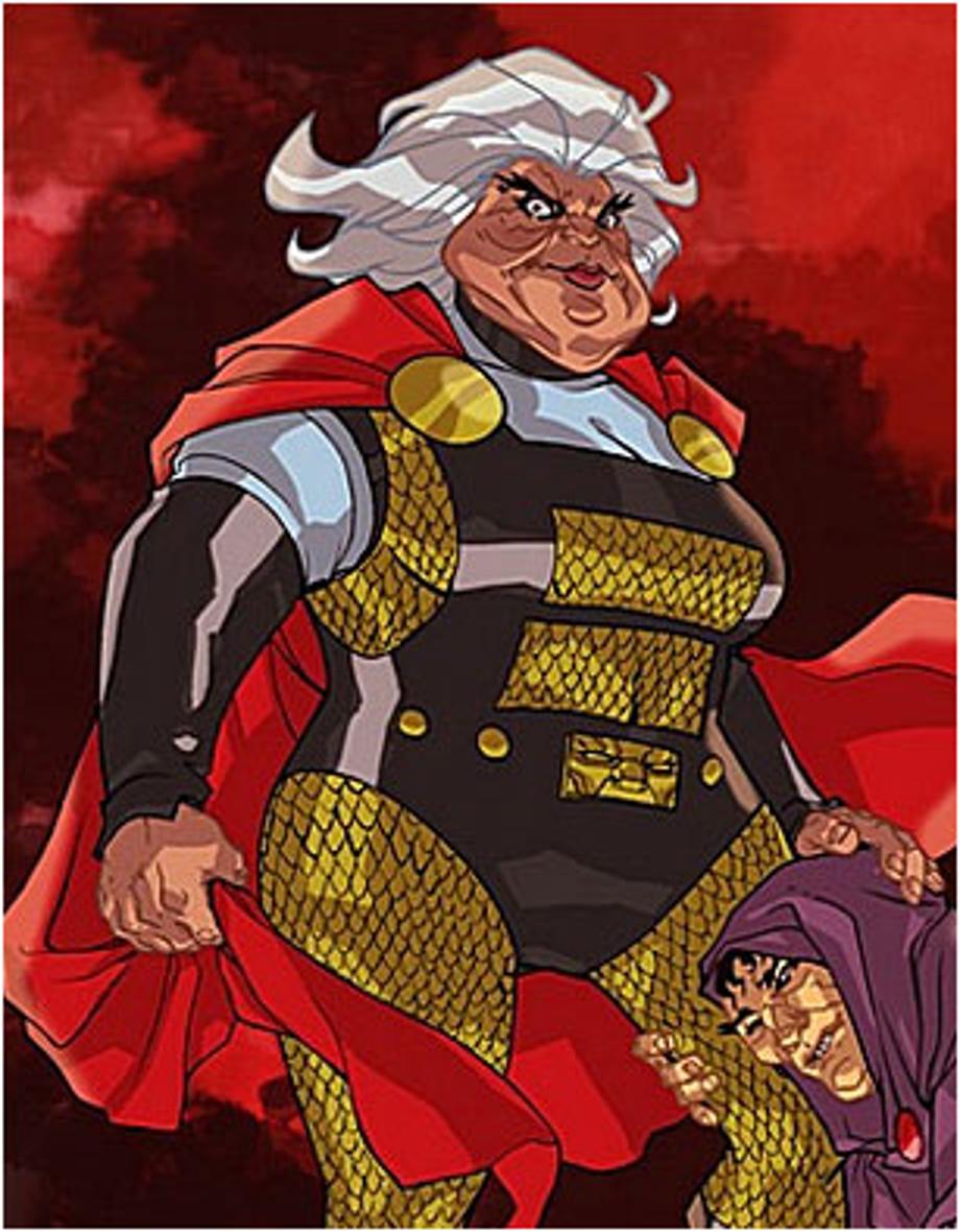 Seriously? A geriatric old woman? She's about as intimidating as Gusto with an erection. Granted, she's super powerful and could definitely give most supervillains a run for their money, but does she have to be so damn old? I guess I'm being an Ageist, but I prefer my villains to not have to slam down some shots of Metamucil cocktail.
