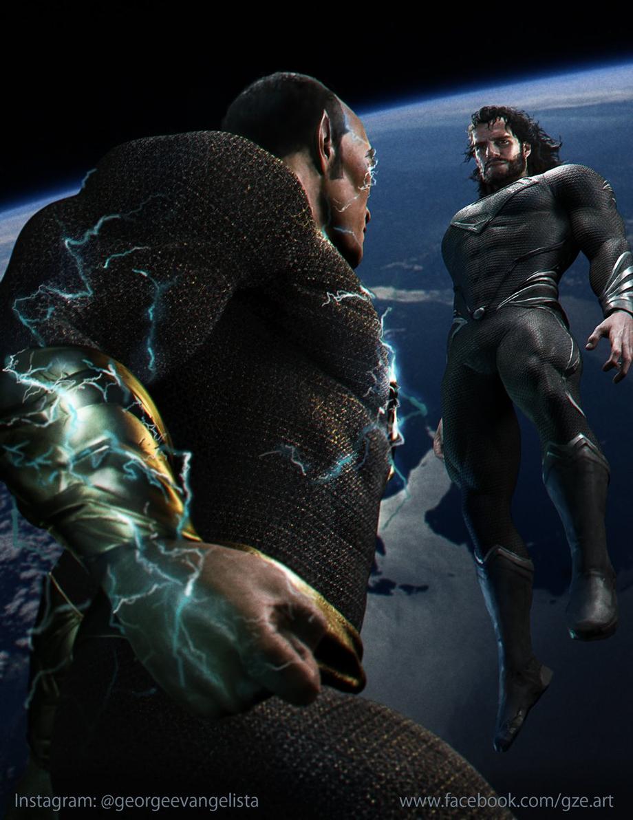 FAN ART: Dwayne Johnson's BLACK ADAM Prepares A Lightning Strike For Henry Cavill's Black Suit SUPERMAN