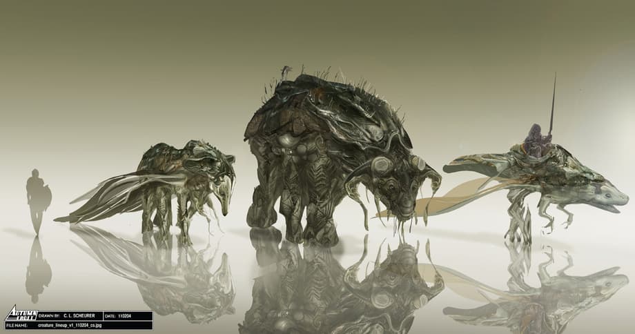 Conceptual illustrator, Christian Lorenz Scheurer ("The Matrix"), has just updated his website with concept art that he created for Zack Snyder's Superman film, Man Of Steel. Come see designs for Kryptonian animals, like H'Raka War Kite, Rondor, and War Dog.