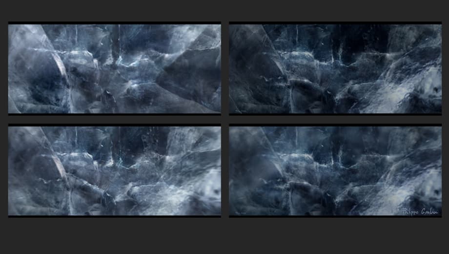 Gaulier also worked on the title sequence for Christopher Nolan's The Dark Knight Rises. As with Nolan's previous films in the series, a Batman logo forms in an unusual way. For Batman Begins, there was a swarm of bats that formed the logo. For The Dark Knight it was blue flames. For The Dark Knight Rises, the logo forms from ice cracking.