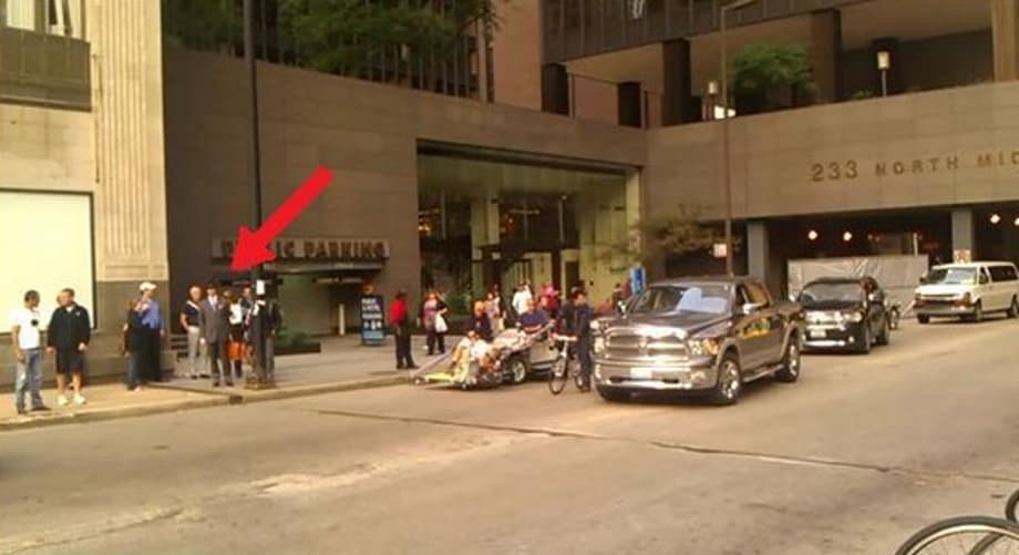 A very interesting rumor was brought to my attention the other day. That rumor stated that an actor from a historical Superman show or movie would be making a cameo in the upcoming Zack Snyder film, Man of Steel. People were told to think outside the box when it came to the cameo, so naturally all kinds of crazy ideas were being thrown around. Including that it might be the late great Christopher Reeve. While this sounds crazy, it might not be too far fetched. Thanks to some Batman like detective work from a Spanish site, and a heads up from @ManofSteel_2013, set photos that were taken from the Chicago set seem to reveal that the cameo might be of Reeve and his classic Clark Kent persona. Check out the set photos below, that show a man dressed in the Kent type clothes Reeve wore in the opening credits to Superman III.