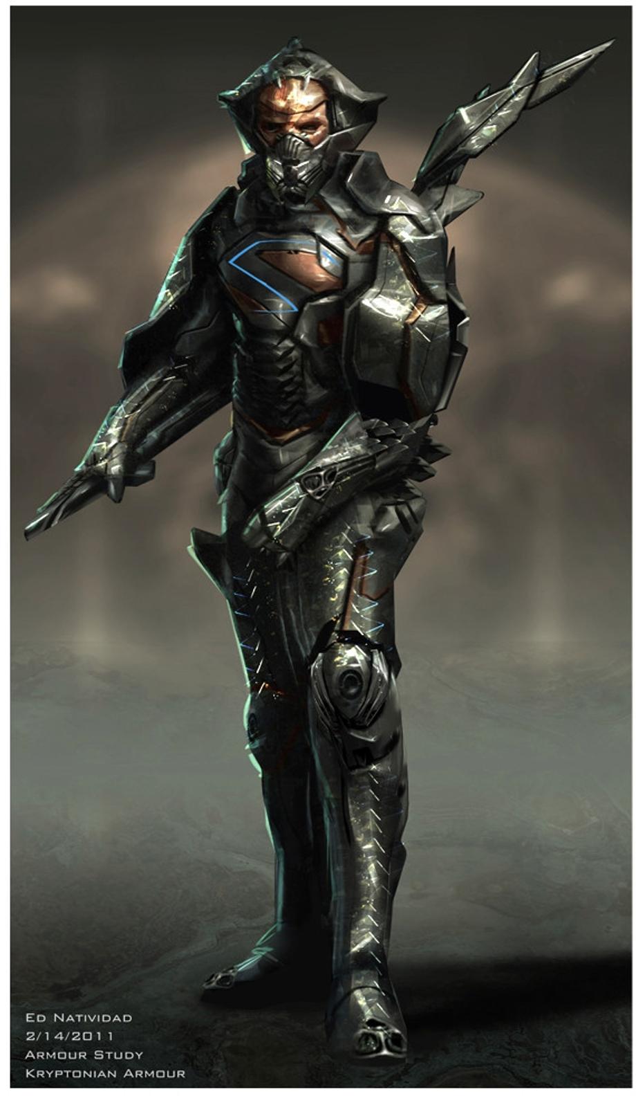 The immensely talented conceptual artist, Ed Natividad (Oblivion & The Amazing Spider-Man), has updated his website with early Man Of Steel concept art that features alternate designs for General Zod's (Michael Shannon) armor. A must see!