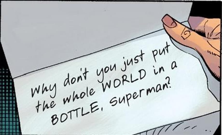 Brief, emotional pause. Superman recollects himself to when he first met Bruce, and he says that he's sorry but it's too late. Bruce reveals that he might've thought he would think that. So he gives him an envelope that has Lois's handwriting. Clark knows her handwriting like it's the back of his hand. He opens it up. And the note reveals....