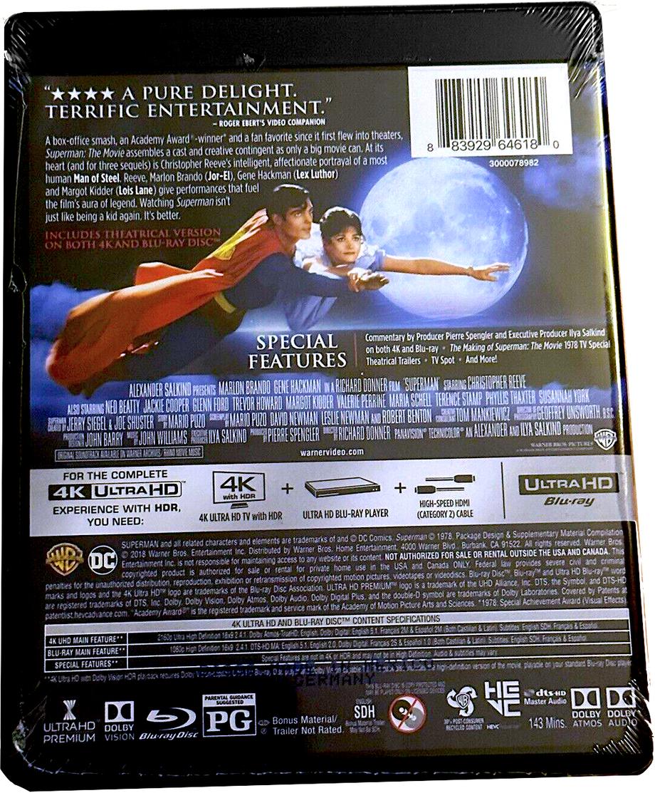 Each set will come packaged with a 4K Ultra HD disc, a Blu-ray disc, and a Digital UHD copy that can be redeemed through MoviesAnywhere. Also, while there doesn't seem to be any new special features, it appears that the UHD disc will indeed feature an audio commentary from producer Pierre Spengler and executive producer Ilya Salkind.