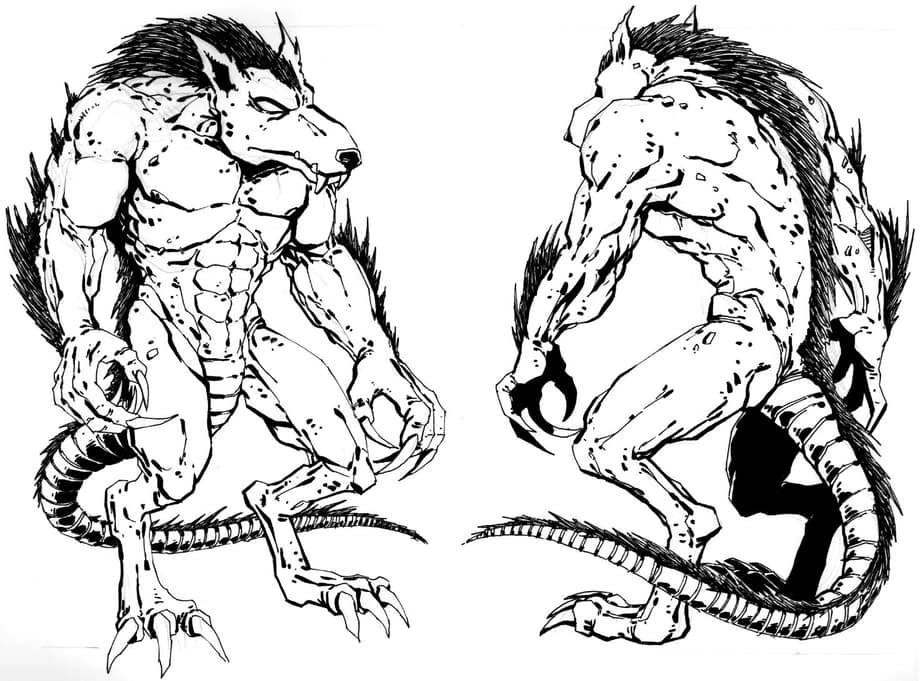 "Here's another design idea from the unfilmed fourth live-action movie. We wanted to give Splinter a much more active part in the battles that the Turtles fought, and so he was going to have the ability to morph into a big, lithe, muscular “super rat mutant” type of thing. Okay, it’s lame... I admit it." - PL