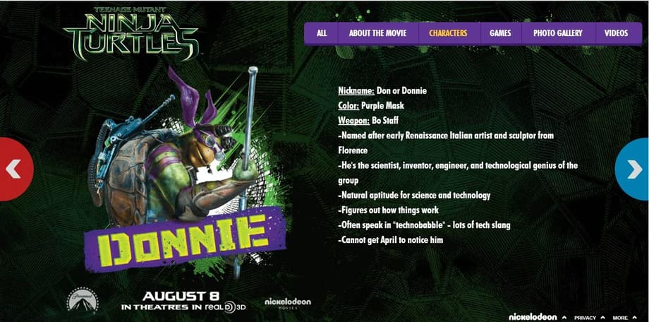 Teenage Mutant Ninja Turtles is directed by Jonathan Liebesman. It stars Megan Fox, Pete Ploszek, Noel Fisher, Jeremy Howard, Alan Ritchson, Danny Woodburn, William Fichtner, Will Arnett, Whoopi Goldberg and opens August 8.