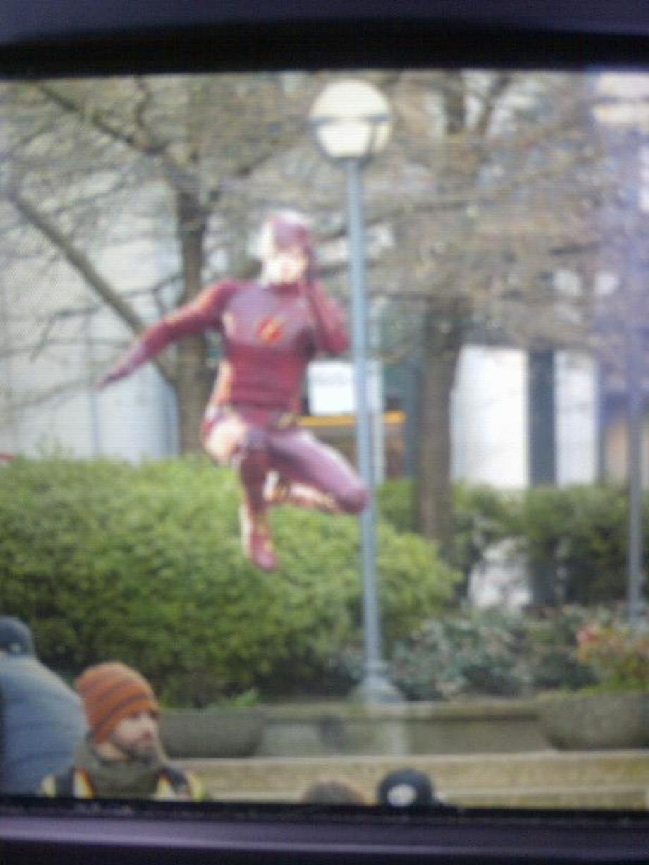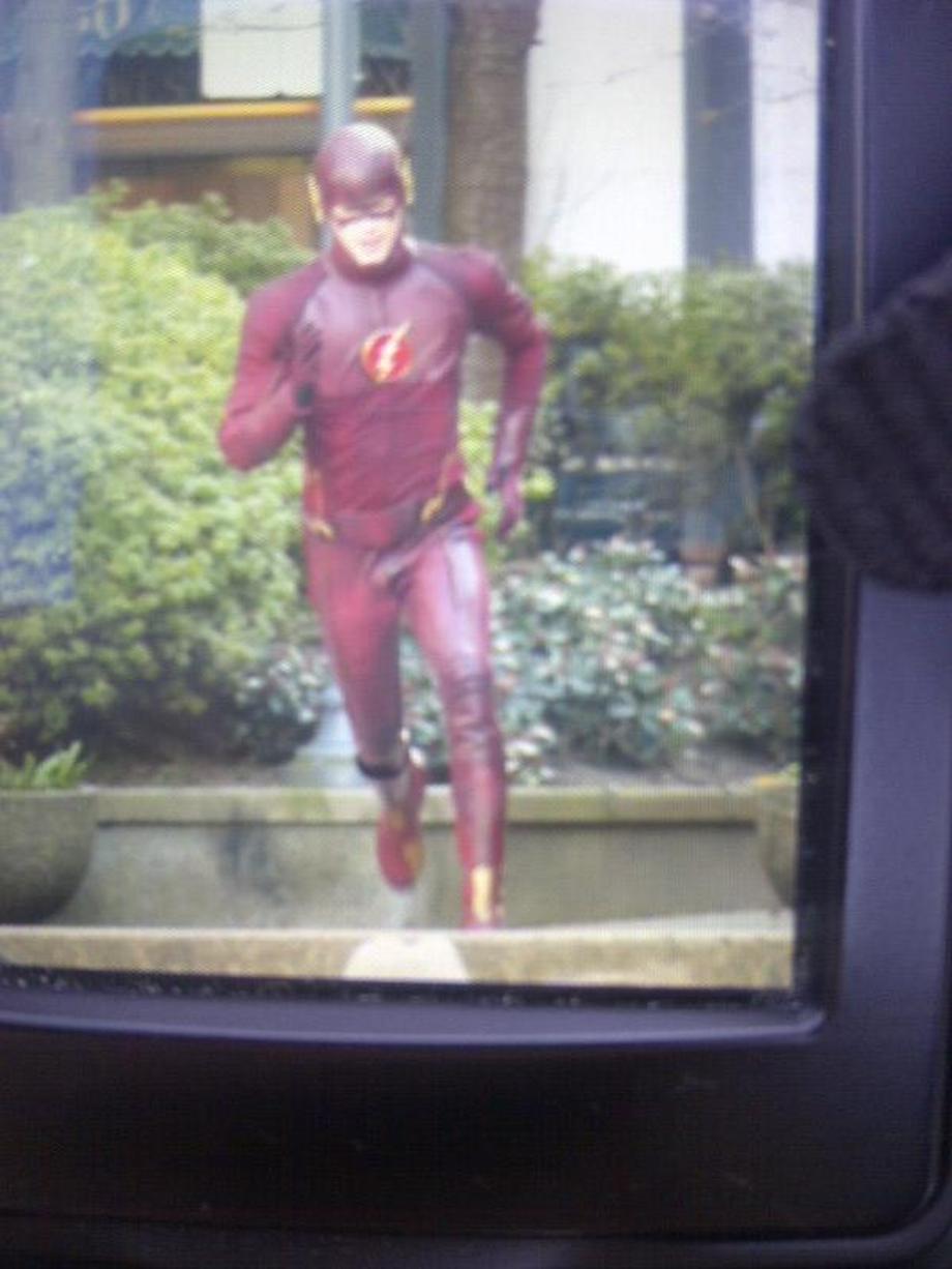 Must see! Hit the jump to see actor Grant Gustin dressed in The Flash costume and running around on set for the first episode of CW's latest comic book-based television series.