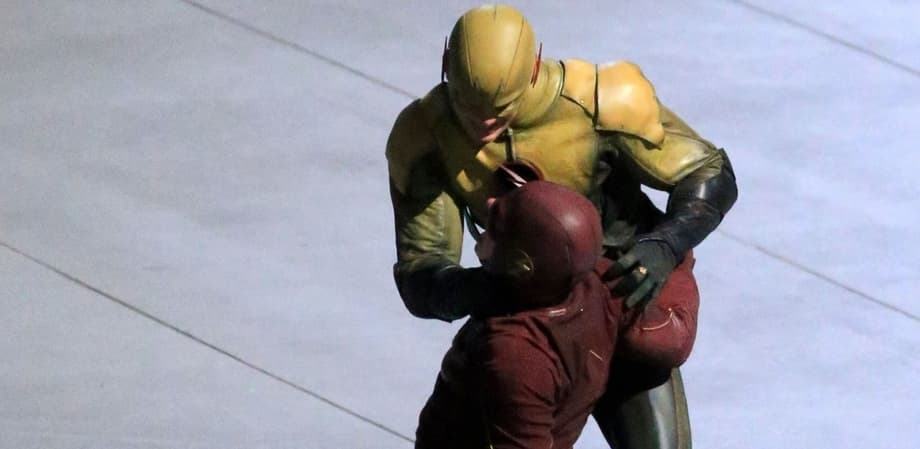 If you were one of the people that guessed that the person wearing that Reverse-Flash costume on the set of The Flash was a stuntman, then give yourself a pat on the back! Barry Allen will come face to face with the villain in the midseason finale of The CW series, but we won't be finding out his identity just yet according to Grant Gustin in an interview with Entertainment Weekly. "Barry will actually get to come face to face with him, not just running with him, but standing face to face with him, looking at him," he told Entertainment Weekly in a recent interview. "He’s vibrating, so he doesn’t know who he is. We don’t see his face. No characters see his face and the audience doesn’t necessarily see his face either, but Barry gets to hear him say that he killed his mom."