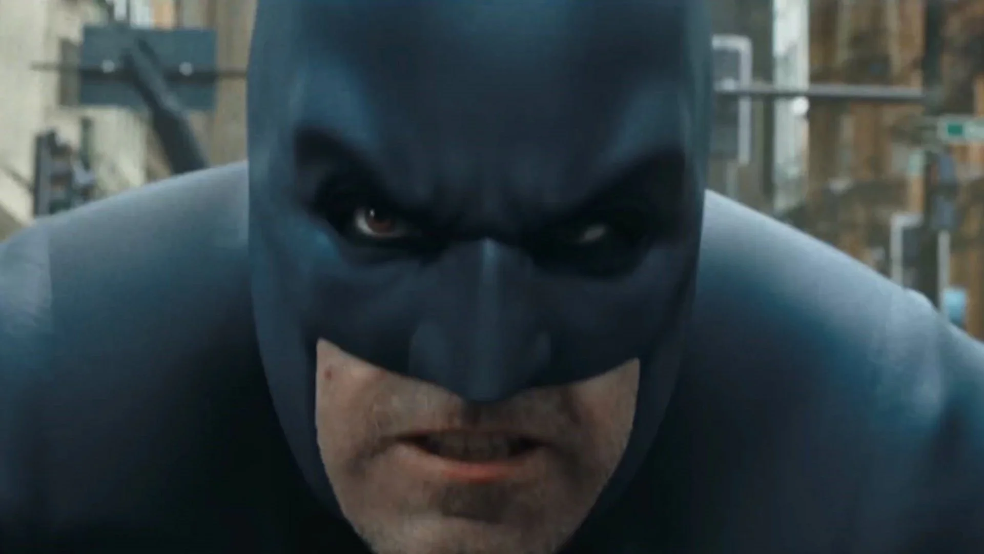 We don't get a full look at the costume, but even from the chest up, it's clear that this silver and black suit is at least slightly different to the one that Affleck wore in the theatrical cut.