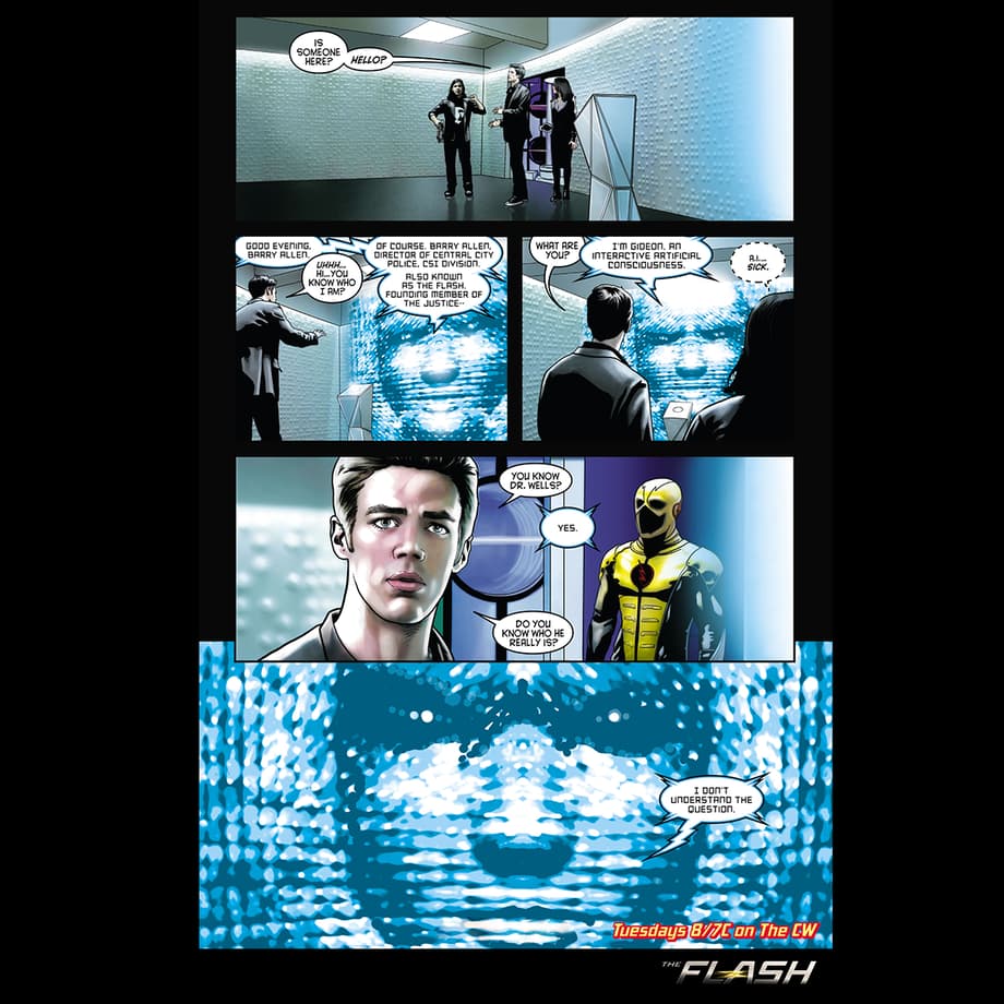 The following comic preview for The Flash depicts a scene from next week's episode, and before she's interuppted, you'll notice that Gideon mentions that Barry Allen is a founding member of The Justice League. Now, it would be easy to dismiss this as a meaningless Easter Egg, but Harrison Wells (a.k.a. Eobard Thawne/Reverse-Flash) has been all about keeping the future in place, despite creating The Flash with the particle accelerator years earlier than he was in his time (explaining why this version of the character is younger than in the comic books). It's obviously all rather confusing!