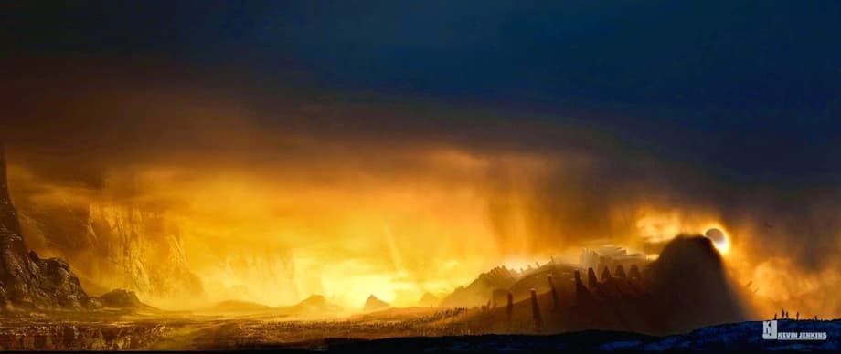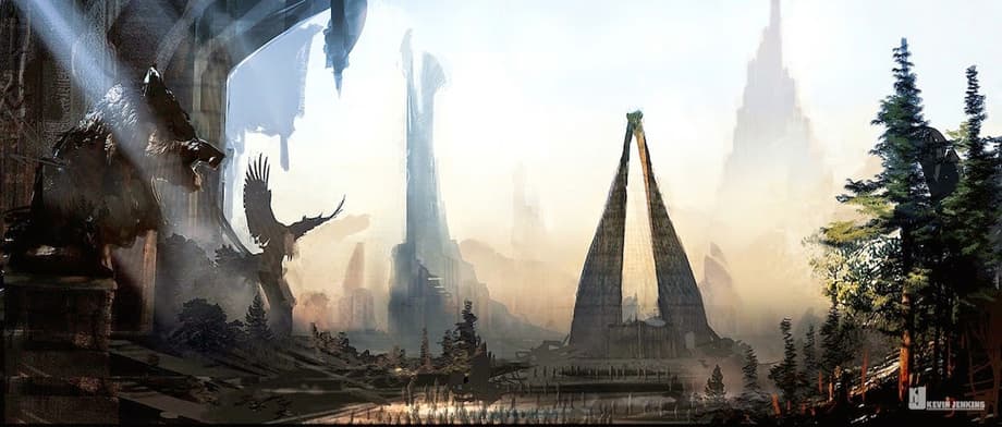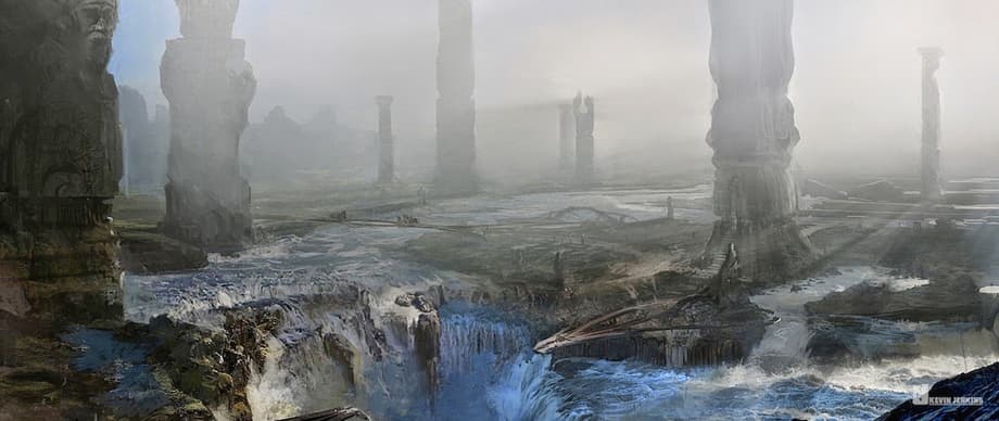 Conceptual illustrator Kevin Jenkins ("Edge of Tomorrow") has posted conept art onto his website that he designed for Marvel Studios' Thor: The Dark World. Check'em out!