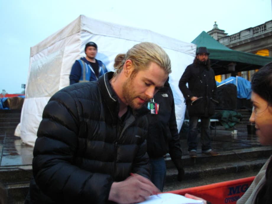 Shooting for the much-anticipated Thor: The Dark World flick has wrapped, for today, but it's expected to pick-up tomorrow and undergo for another 2 weeks at Greenwich, London, England. And the latest, greatest batch of photos from the guarded set once again feature the star Chris Hemsworth suited up in Asgardian armor, and wielding the mighty Mjolnir before the cameras. Displayed in high-quality courtesy of CeleBuzz and Fame/Flynet, hit the images below to enlarge!