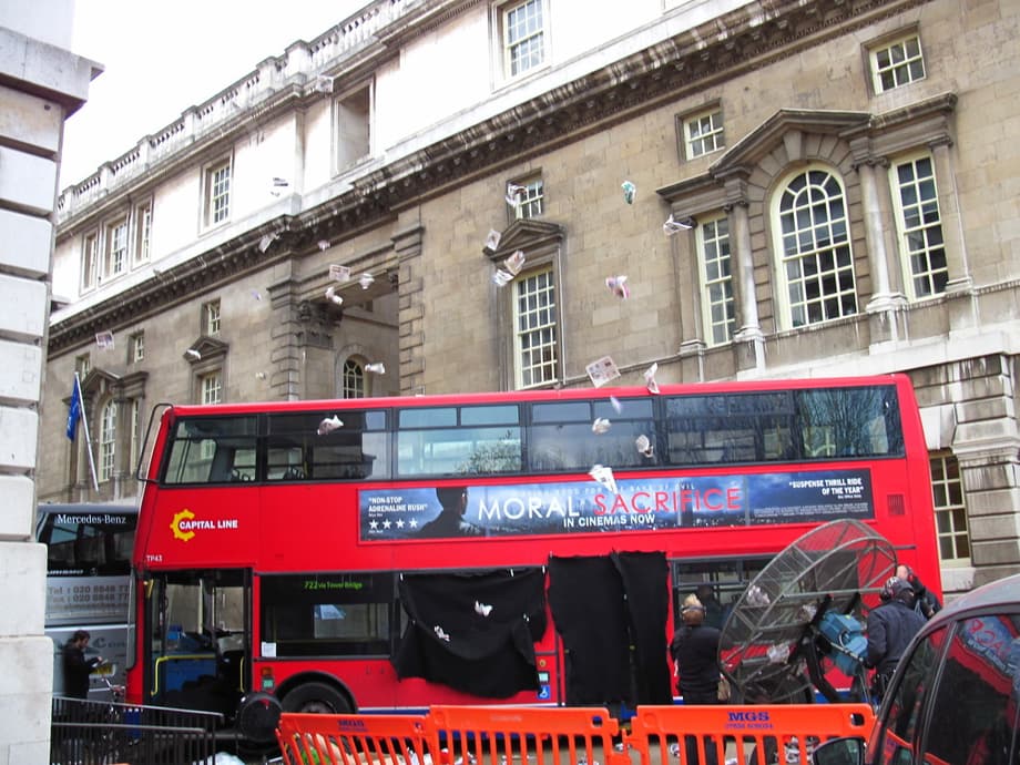 The bus that Mr. Greenwich is referring to is the London double-decker, with a fictional movie advert on its side, which was spotted last week. It seems the very sequence that Natalie Portman & Chris Hemsworth are filming today will involve the bus. What do you think?