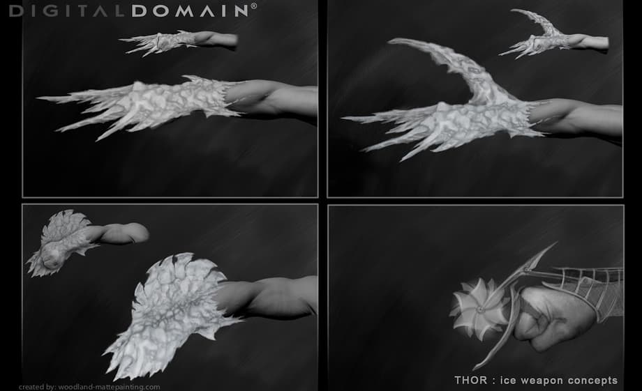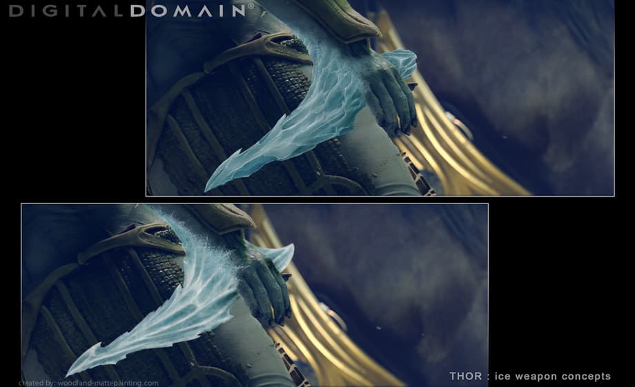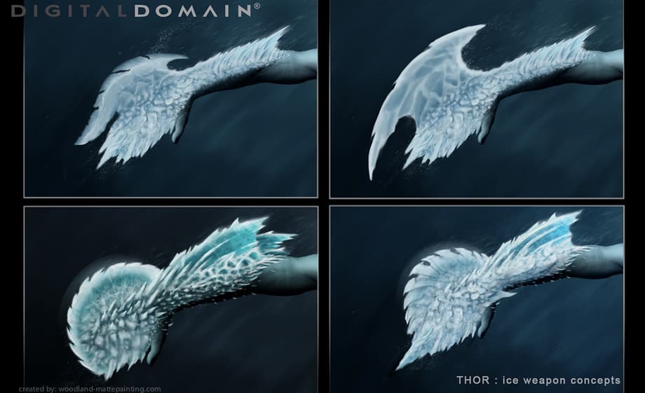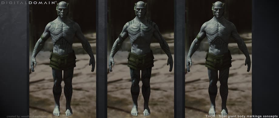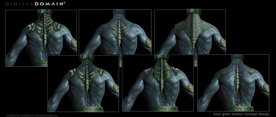 Matte painter and concept artist, David Woodland (Woody), helped design the look of the Frost Giants of Jotunheim for Kenneth Branagh's 2011 film, Thor. The designs focus on the creatures body markings, weapons, and armor. Also, some concepts for the Bifrost.
