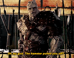 The brief sneak peek finds The Odinson (Chris Hemsworth) in the midst of a battle and calling for the reformed hammer of the gods. Mjolnir flies to him, but stops just short of his outstretched hand and zips back to its new owner, Jane Foster.