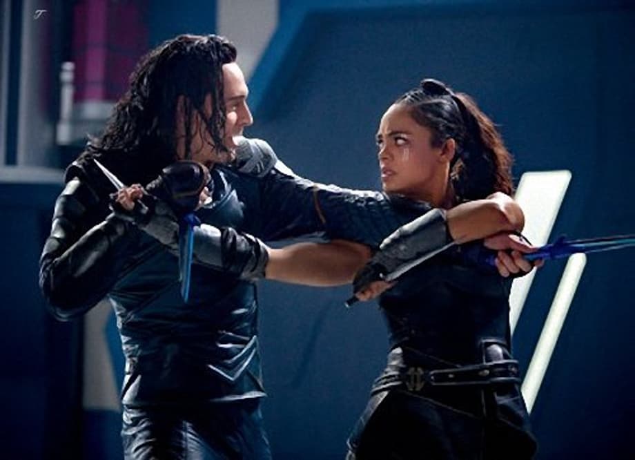 New THOR: RAGNAROK Image Teases A Showdown Between Tom Hiddleston's Loki & Tessa Thompson's Valkyrie