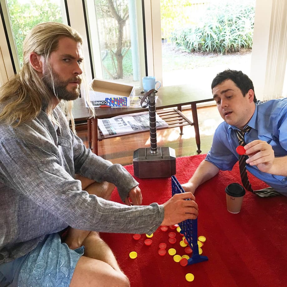 Director Taika Waititi shot a documentary short that featured Thor living down in Australia with a guy named Daryl Jacobsen, in a small apartment. He’s wearing board shorts, sitting around not doing much in a cheap apartment. Daryl has some difficulty vacuuming around Mjolnir sitting in the middle of the floor. We also get to see Thor volunteering at an elementary school, asking them to identify poor drawings of The Avengers. Thor is surprised that the kids know who “the purple weirdo” is in the line-up. But easily the best part about this little short are the letters that Thor dictates for Daryl to send to Tony Stark and Steve Rogers. Thor writes to Tony, “How’s it going? Remember that time you created the possessed robot that nearly destroyed Earth? That was funny.” Then to Steve Rogers he writes, “Do you remember when I goaded you into killing those prisoners and you made me swear not to tell the other Avengers? I haven’t told them yet.”