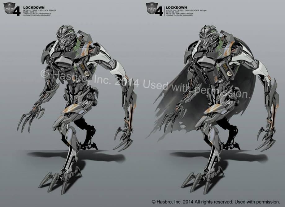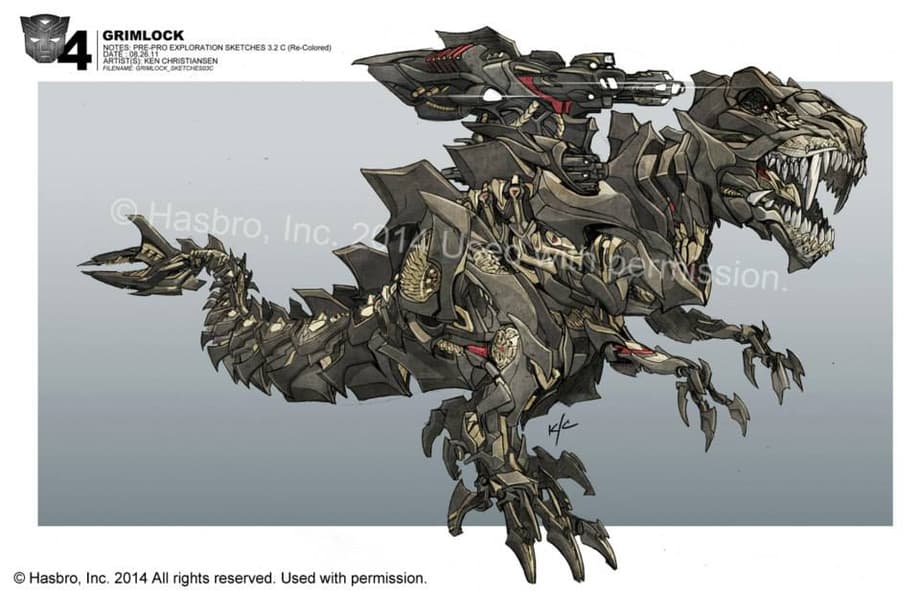 Conceptual illustrator, Ken Christiansen, updated his site with concept art he created for Michael Bay's Transformers: Age of Extinction. Come see early designs for Lockdown's robot and car modes as well as Grimlock's dino and robot modes.
