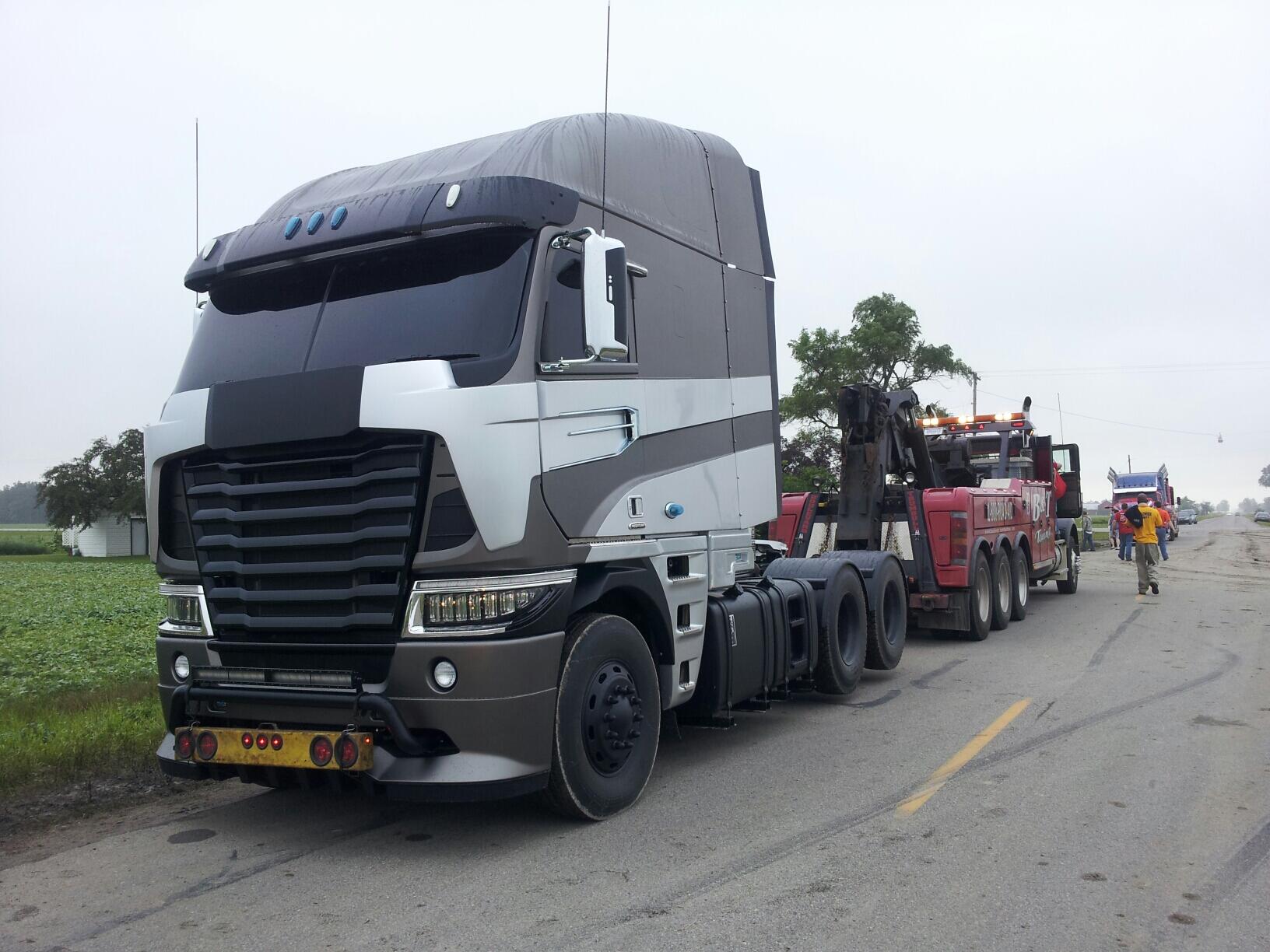 Yesterday, Optimus Prime was spotted on M-52 south of Adrian, Michigan. He was dodging a barrage of explosions for Michael Boom Boom Bay's Transformers 4. And the newly unveiled 2014 Argosy Freightliner also made an appearance. Hit the jump to check it out.
