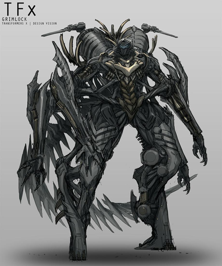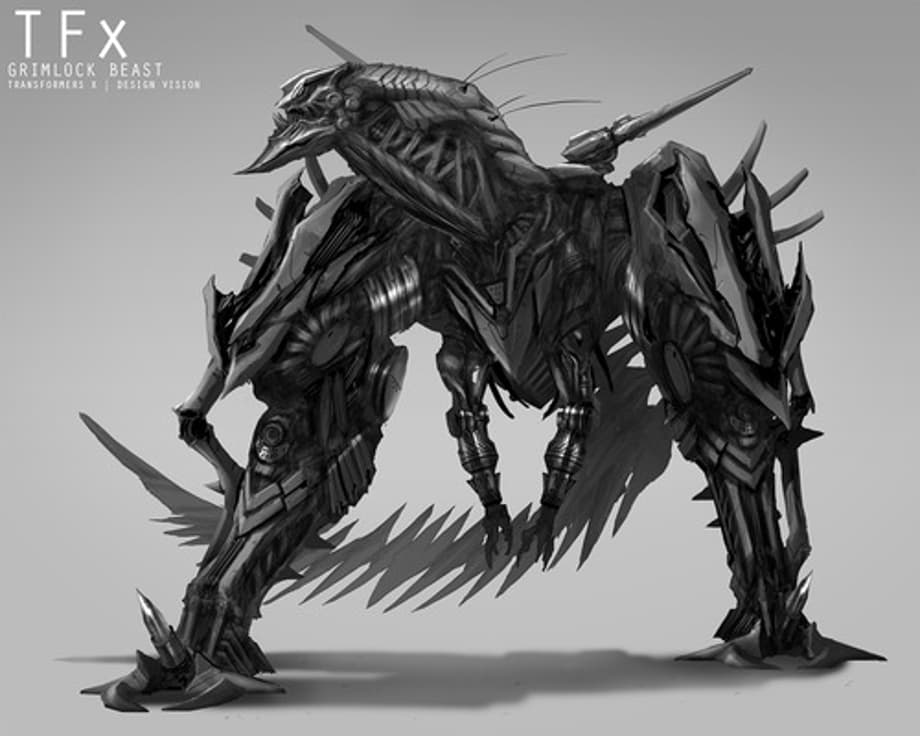 "The goal was to explore new aesthetic vision for the TF film universe such as layering to see the inner mechanic structure under a transparent layer, organic shape to the Mechanic - Musculature, new silhouette, new panel segmentation styles, Organic forms and Muscle system. So with these goals in mind there was a list of Transformers I could choose from to redesign and the Dinobots was in the list. So Dinobots it is and here are my takes on them." - Hoi Mun