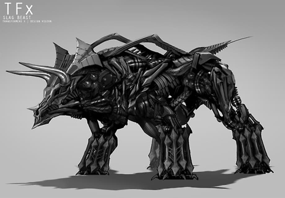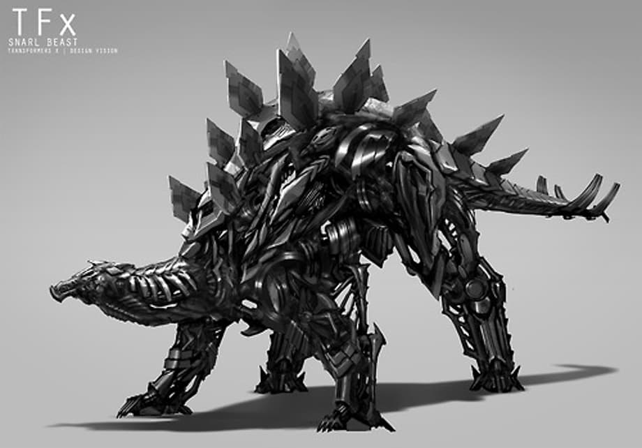 Three years ago, Hasbro contacted Hoi Mun of Xylac Industries, asking him if he would explore some different designs for a pitch to Paramount regarding Michael Bay's Transformers franchise. He was only given two weeks to work on the assignment, and only focused on the Dinobots (Grimlock, Slag, Sludge, Snarl and Swoop) - keeping some of the G1 elements.