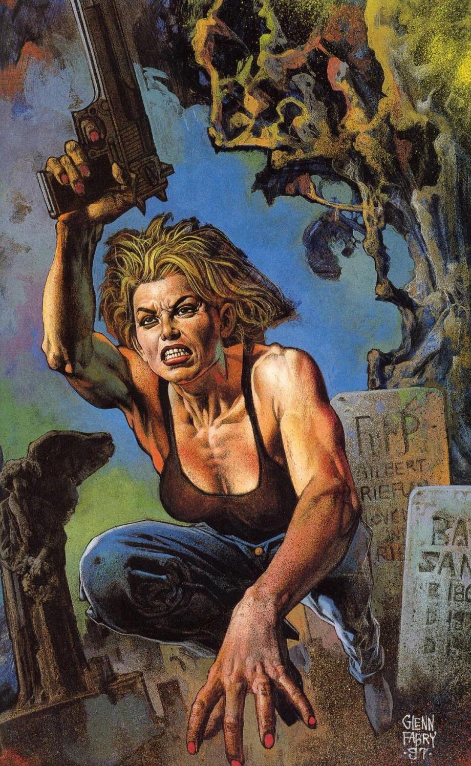 Then, the Saint shoots the officer who shot the horse, blowing his head off, guts everywhere. The second officer shoots the hell out of the Saint. But the Saint is unharmed by the bullets. He then finishes the second one, and walks on his feet to Annville.