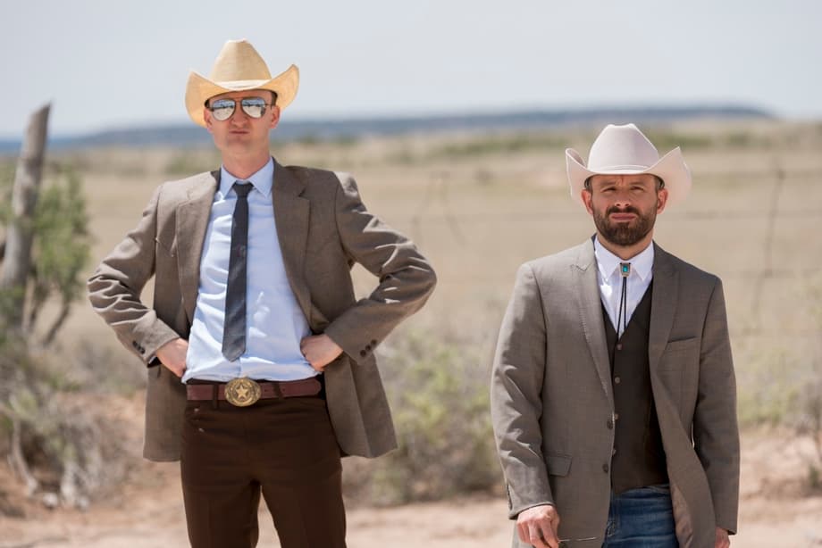If you've never read Garth Ennis and Steve Dillon's Preacher be forewarned - Jesse Custer has issues with authority, particularly law enforcement (both earthly and otherworldly). Though things appear calm in the still below with Sheriff Root,it's likely that things to get pretty tense in the next shot. We also have a new still showcasing Fiore (Tom Brooke), DeBlanc (Anatol Yusef) , two Adelphi agents sent to Earth to retrieve Genesis.