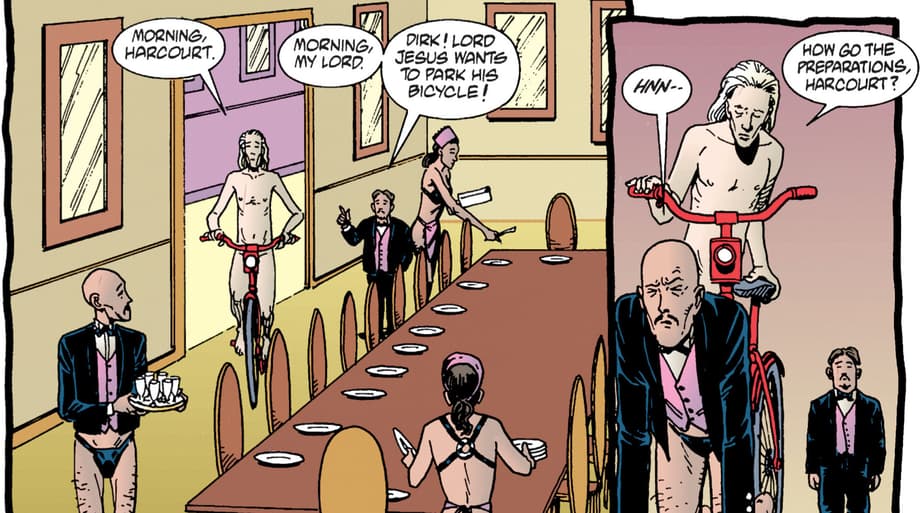 The character of Jesus DeSade only appears in one issue of the comic, but his actions became one of the biggest talking points. DeSade is the leader of the Gomorrah people: hedonists who dedicate their lives to indulging in the most taboo/forbidden forms of pleasure imaginable. At one point Jesse and Cass wander into one of their infamous parties and seem to be at least semi-enjoying themselves... until Jesse notices the crying child in the corner with a camera rolling nearby.