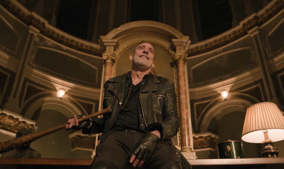 The trailer opens with an eerie cover of “Manhattan” by Rodgers & Hart, setting a haunting tone. “Why do you want to bring back Manhattan?” Maggie asks, a question met with Perlie Armstrong’s somber reply: “We’ve lost too much.” What follows is a montage of chaos, gatherings in abandoned churches, flickering lights over a reclaimed Radio City Music Hall, and a chilling warning from Negan himself: “Power equals power. So if you ain’t with us… I guess you’re in for a bit of a shock.”