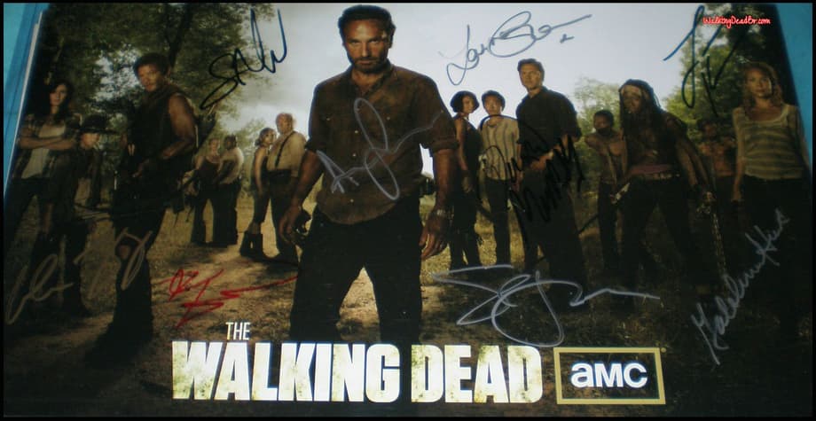 This new poster was seen at this year's San Diego Comic-Con, and it was available for cast autographs. Even though it's a low-resolution version, we can still get a proper look at the main cast of the show, including Danai Gurira and David Morrissey as Michonne and The Governor, respectively.