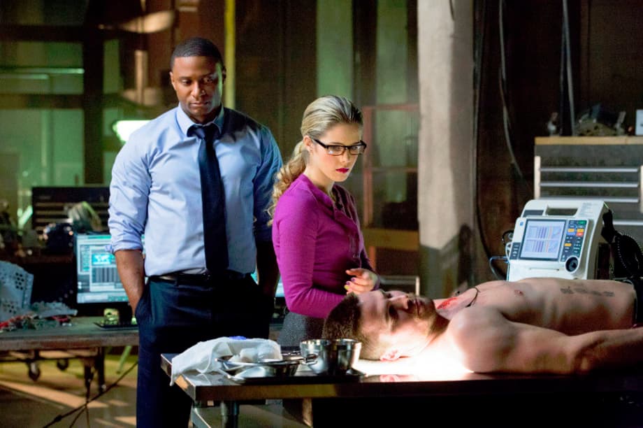 MANU BENNETT (“SPARTACUS”) GUEST STARS AS SLADE WILSON — After Oliver (Stephen Amell) is shot, he turns to a surprising person for help – Felicity (Emily Bett Rickards). Diggle (David Ramsey) is stunned when he sees Felicity walk through the front door of the lair dragging a dying Oliver behind her, and the two team up to save Oliver’s life. As Oliver (Stephen Amell) hovers between life and death, he flashes back to a seminal event on the island – a daring escape attempt with his new friend Slade Wilson (guest star Manu Bennett). Katie Cassidy, Willa Holland, Paul Blackthorne and Susanna Thompson also star. John Behring directed the episode with story by Greg Berlanti & Andrew Kreisberg and teleplay by Andrew Kreisberg and Marc Guggenheim (#114).