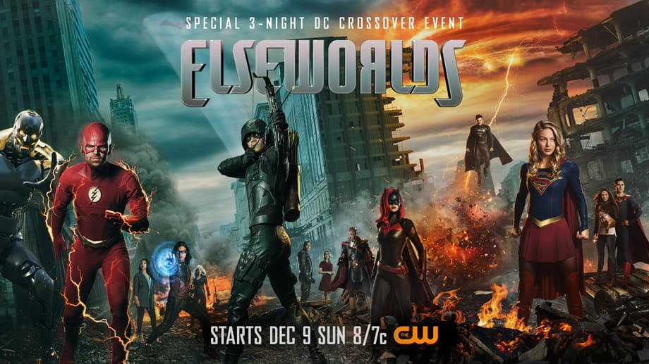 Elseworlds begins Sunday, Dec. 9, with The Flash at 8 p.m. ET; continues Monday, Dec. 10, at 8 p.m. ET with Arrow; and concludes the following night at 8 p.m. ET with Supergirl.