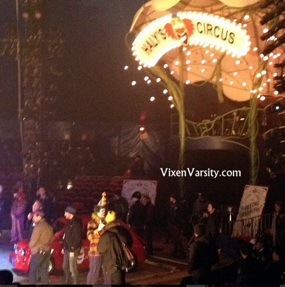 The sixteenth episode of Gotham was being shot earlier this week, and Vixen Varsity have rounded up some photos and details from the set of the hit Fox series. As you can see below, "The Flying Graysons" are already a big part of Haly's Circus, while Jim Gordon and Dr. Leslie Thompkins will obviously become an item pretty soon based on Morena Baccarin's WhoSay post. The site adds that there will be a fight between the clowns and trapeze artists, with Gordon later questioning the ringmaster and "an evil clown" following a murder. Could this be some sort of nod to The Joker? It's unlikely, but you never know! Dick Grayson's parents meanwhile are much younger at this point, so we'll be meeting them as Mary Lloyd and John Grayson, with the former apparently the daughter of a clown who is in love with John, the son of a trapeze artist. What do you guys think?