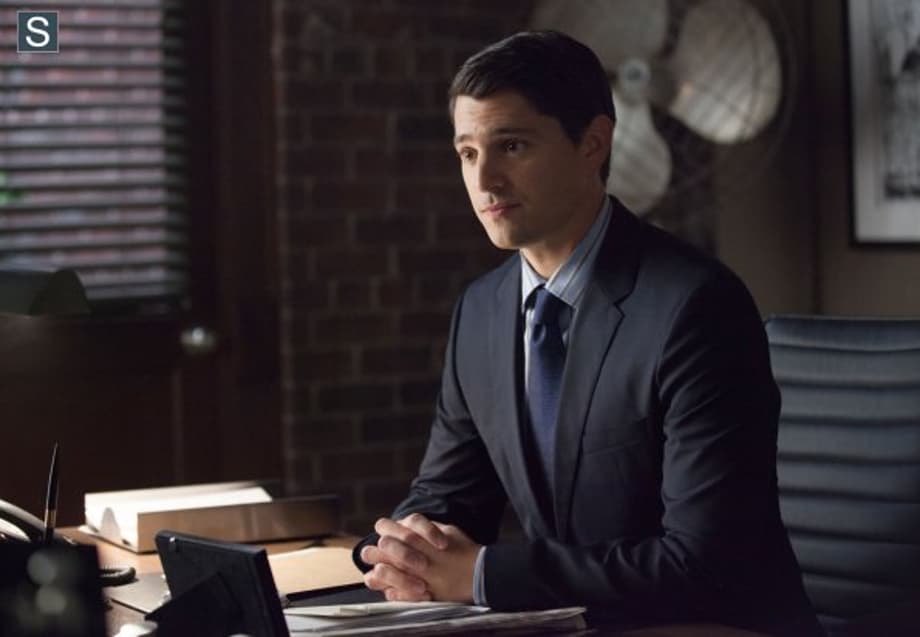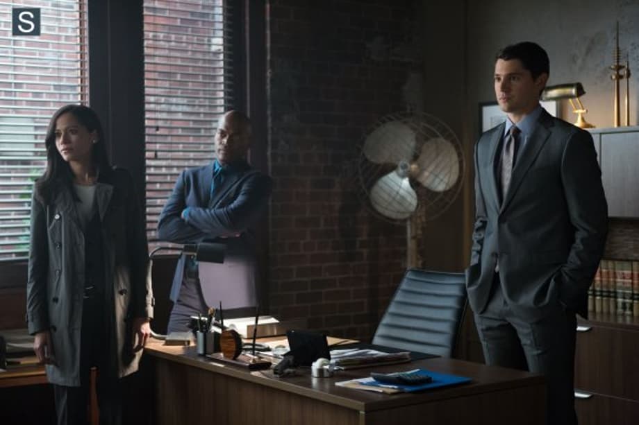 We got our first glimpse of Nicholas D’Agosto as the future Two-Face already, but now we have some more images from the November 17th ep of Gotham, giving us a look at the fearless young DA with several other characters, and also a nice snap of him flipping his iconic coin.