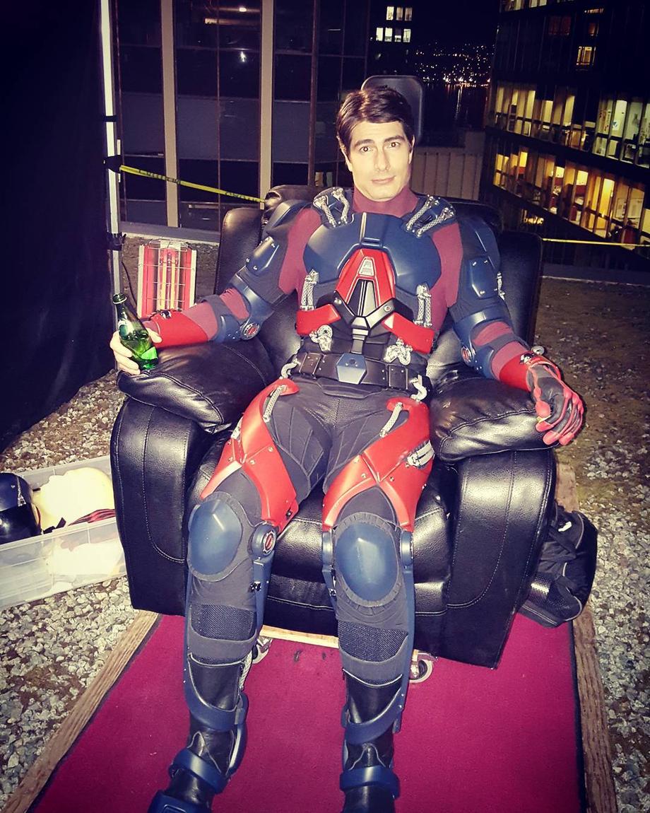 Poor Routh, he can't even sit down comfortably in that suit. I hope that they do something to make it less cumbersome. You can tell when he's having trouble moving.