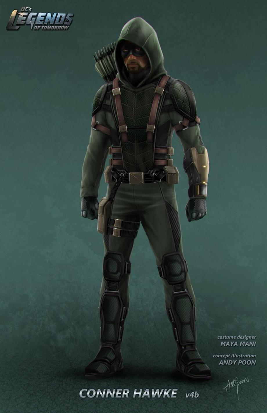 Check out some stellar concept art for 2046 Green Arrow (Stephen Amell), featuring the Emerald Archer's mechanical arm.and for Connor Hawke (Joseph David-Jones).