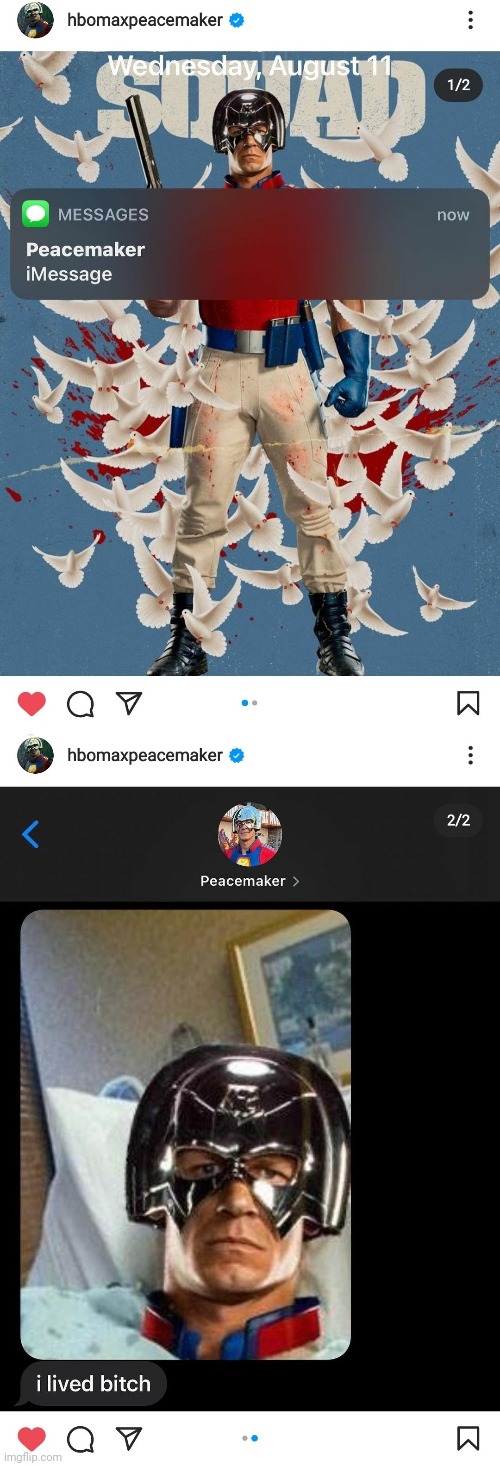 Check out Peacemaker's Tweets below - but be warned that one of 'em might be considered a SPOILER if you haven't seen The Suicide Squad!