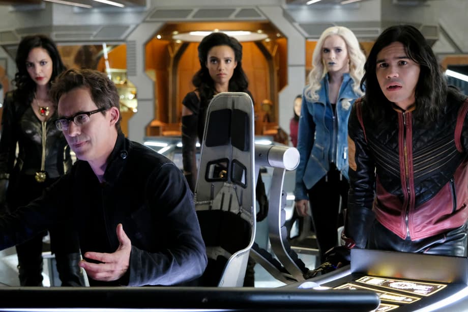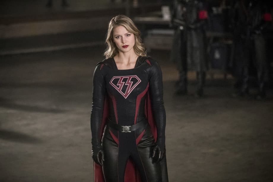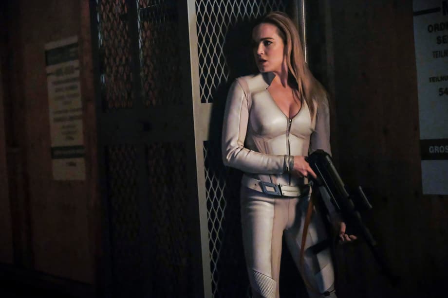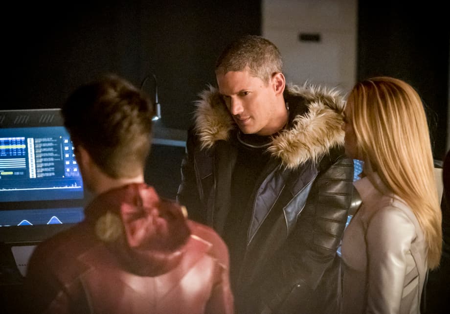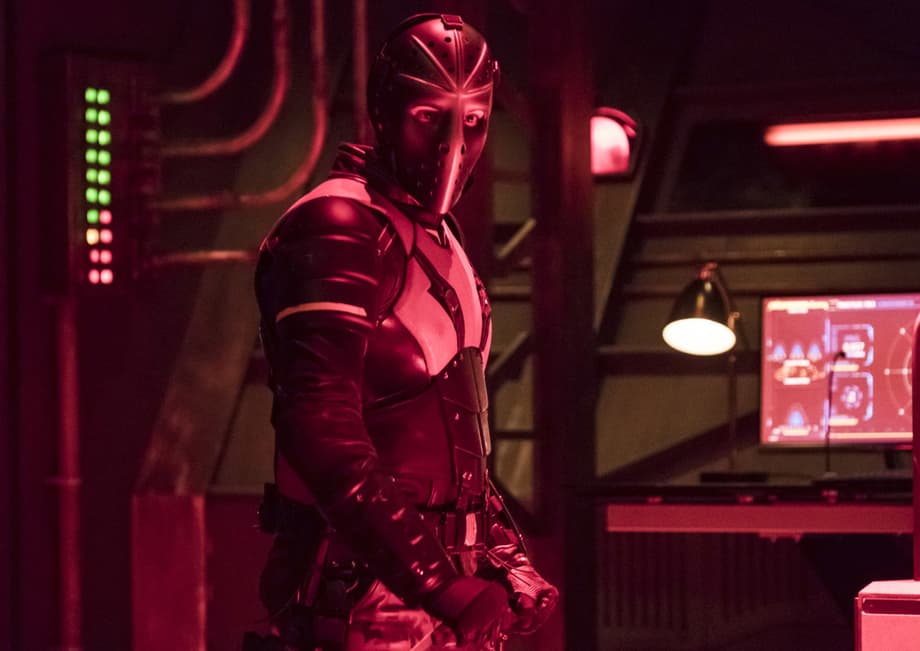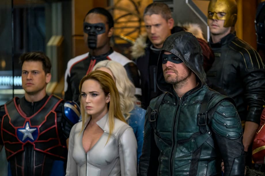 We're also treated to a first look at Wentworth Miller's final bow as Citizen Cold (with some cool new shades) and Tala Ashe as Zari in her new costume. Also, the new batch of photos also reveal the leaders of the nasty Earth-X villains, who are all played by three very familiar faces pulling double-duty. Melissa Benoist is playing Kara's Earth-X counterpart Overgirl, Tom Cavanagh is playing the Reverse-Flash Dark Flash, and Stephen Amell is playing Dark Arrow.